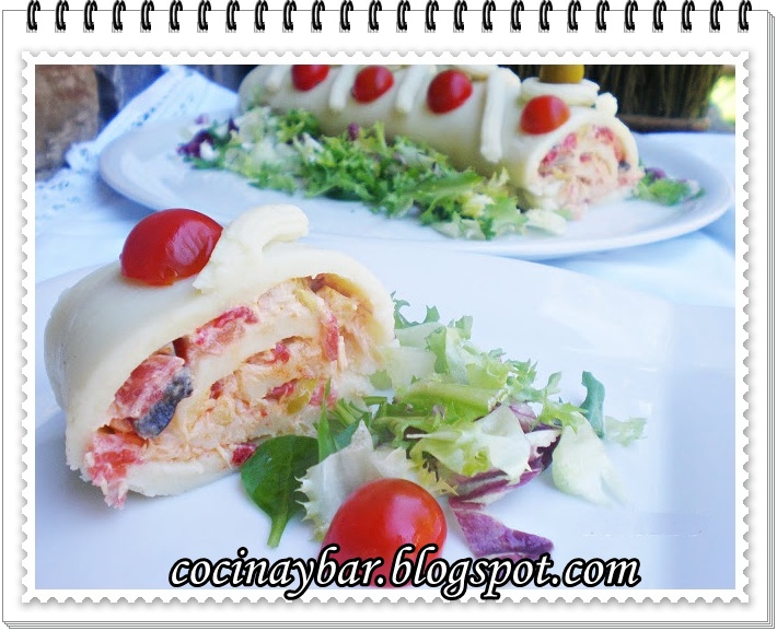Enroscar ayudándonos del film hasta formar un rollo, recortar los extremos y depositar en la bandeja de servir.